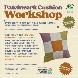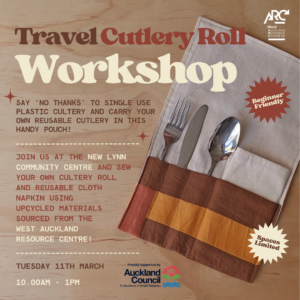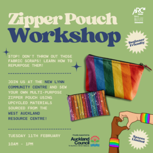 Join us at the new lynn Community Centre and sew YOUR OWN multi-purpose zipper pouch using upcycled materials sourced from the West Auckland Resource Centre!