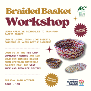 Learn creative techniques to transform fabric scraps! Create useful items like baskets, coasters or water bottle carriers! Join us at the New Lynn Community Centre