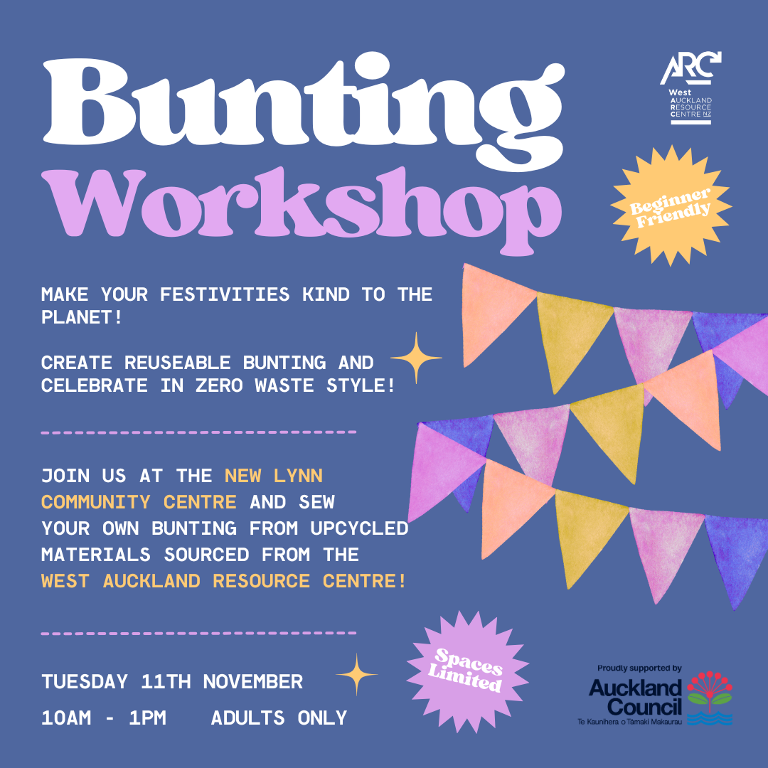 Make you festivities kind to the planet! Create reuseable bunting and celebrate in zero waste style! Adults only.